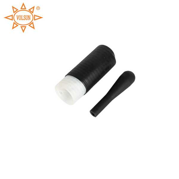 Die Silikon-Kaltschrumpf-Endkappe besteht aus hochwertigem Silikonkautschuk und ist auf einem Stützrohr aus Streifenkunststoff vorgeschäumt. Dieser Kappentyp lässt sich einfach vor Ort installieren, ohne dass eine Heizung erforderlich ist. Schieben Sie einfach die Kappe über das Ende des Kabels und entfernen Sie den Stützstreifen. Die inhärente ausgezeichnete elastische Memory-Funktion des Silikonkautschuks ermöglicht es der Kappe, nach dem Einschrumpfen eine stabile und dauerhafte isolierende Dichtung am Ende des Kabels zu bilden. Aufgrund dieser Eigenschaft eignet sich die Kaltschrumpfkappe besonders für den Einsatz im Lager- und Baubereich von Nieder- und Hochspannungskabeln. Sie ermöglicht eine schnelle Isolationsabdichtung und erfüllt die Anforderungen an die Kabelisolierung, den Bau vor Ort sowie Feuchtigkeit und Wasser Beständigkeit bei der Lagerung.